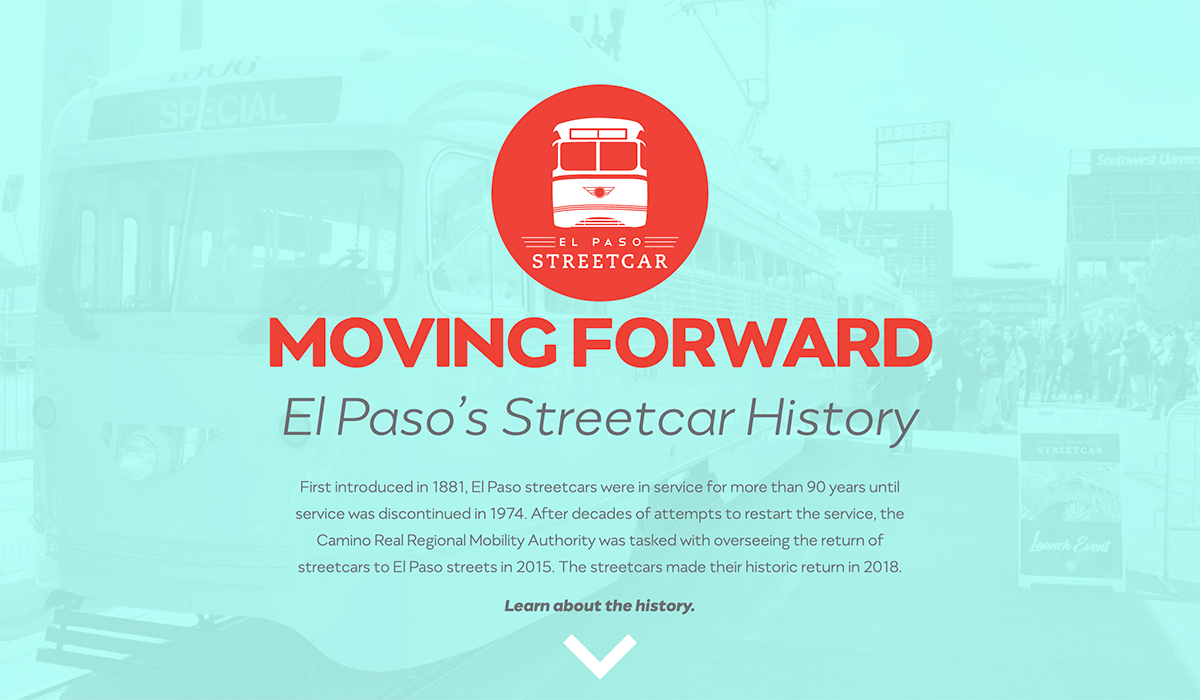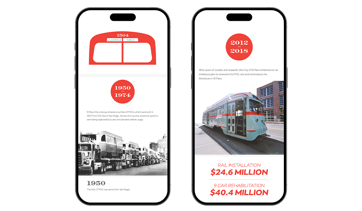 The microsite was designed to honor the legacy of the streetcars while clearly communicating the story of their restoration and return to downtown El Paso.