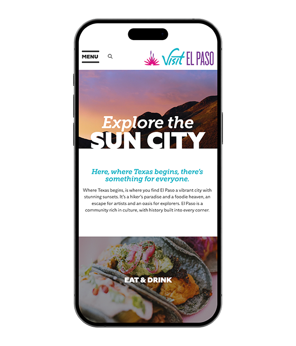 Visit El Paso serves locals, tourists, meeting planners, and event organizers with resources for exploring the city. As the centerpiece of Destination El Paso’s marketing efforts, the website needed a fresh, visually engaging design that reflected the vibrancy of the community, culture, and experiences El Paso has to offer.